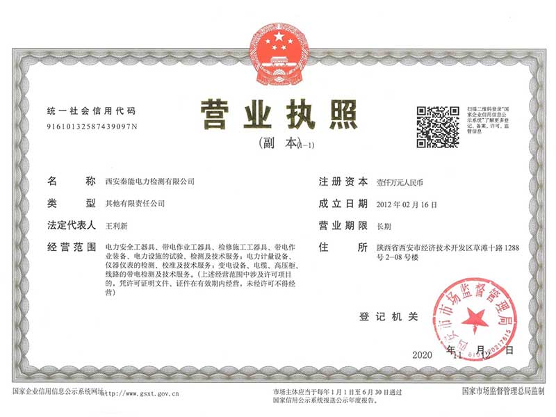 西安秦能電力檢測(cè)有限公司始建于2012年2月。公司主營(yíng)業(yè)務(wù)為電力安全工器具、帶電作業(yè)工器具、檢修施工工器具、帶電作業(yè)裝備、電力設(shè)施的試驗(yàn)、檢測(cè)及技術(shù)服務(wù)。電力計(jì)量設(shè)備、儀器儀表的檢測(cè)、校準(zhǔn)及技術(shù)服務(wù)。變電設(shè)備、電纜、高壓柜、線路的帶電檢測(cè)及技術(shù)服務(wù)。